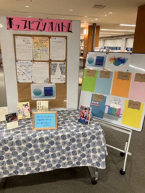 図書館サポーターによるポップビブリオバトルが開催中です。