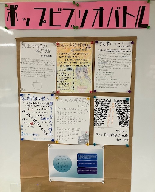図書館サポーターによるポップビブリオバトルが開催中です。